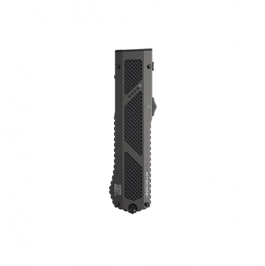 Nová malá ruční svítilna od společnosti Nitecore je tady. Tentokrát v podobě svítilny 3v1 s názvem EDC17. Ta kombinuje 4 intenzity bílého světla, 3 intenzity UV světla a zelený laser. Má koncepci nezvykle plochého tvaru vhodného pro každodení nošení. Ano, svítilna připomíná svým tvarem a posuvným tlačítkem vystřelovací nože Microtech. Jako zdroj světla využívá špičkové LED UHi 25. Díky výkonné LED má EDC17 dosvit až 230 metrů. Světelný tok je 1 500 lumenů a intenzita světelného kuželu je až 12 400 candela. K ovládání svítilny slouží dvě tlačítka nacházející se na hraně svítilny. První posuvné tlačítko slouží k zapnutí svítilny a přepínání intenzit svitu. Druhé tlačítko slouží k přepínání režimů jako je Bílé světlo / UV světlo / Laser. UV světlo slouží ke kontrole pravosti dokladů, detekci skvrn nebo tělesných tekutin. Případně k identifikaci různých materiálů. To využijete např. v automobilovém průmyslu. Zelený laser je ideální pro prezentace nebo jako ukazovátko pro označení místa problému. Li-Ion akumulátoru o kapacitě 1500 mAh je napájen přes integrovaný micro USB-C konektor. NITECORE EDC17 má tělo vyrobené z nerezové oceli s titanovou povrchovou úpravou. Pata svítilny je vybavena hrotem, který slouží k rozbíjení oken. Při své ploché konstrukci a hmotnosti pouze 106 g je to výborná kapesní / pracovní svítilna od Nitecore pro každodení použití.