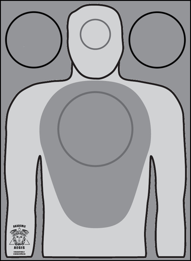 - účel terče: 1) vytváření návyku střelby na hlavní vitální/zásahovou plochu na těle (označovanou jako tzv. Center of Mass, High Center Chest…), 2) terč pro variabilnější a reálnější trénink obranné střelby