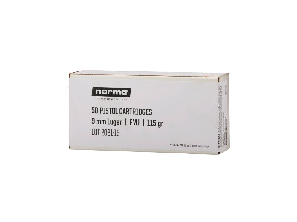 Náboje Norma 9mm Luger FMJ 115 gr.