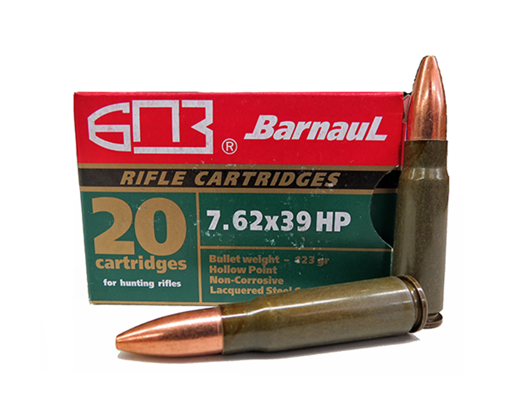 Střelivo Barnaul ráže 7,62x39 HP - hollow point.
